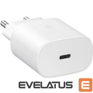 Samsung travel network charger with USB-C output, maximum power 25W and USB-C data cable.
