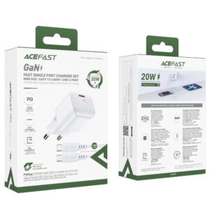 Acefast A73 Mini 20W GaN wall charger with Power Delivery technology + USB-C cable – white