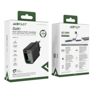 GaN Acefast A90 wall charger with USB-A port up to 18W with Quick Charge support – black