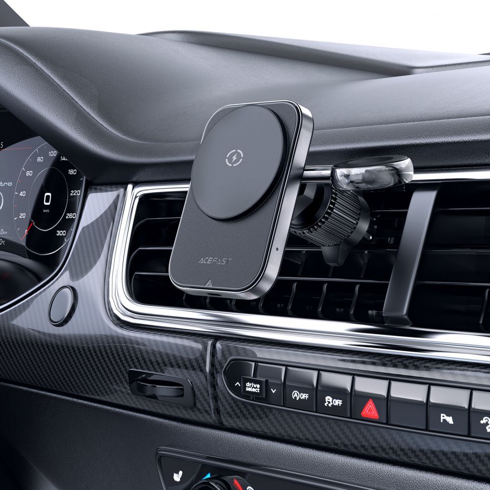 A modern and elegant phone holder with an inductive charger supporting MagSafe technology. Thoughtful design combined with easy assembly make it an ideal handle for anyone who values comfort. The Acefast D18 car holder allows you to charge your phone and watch at the same time.