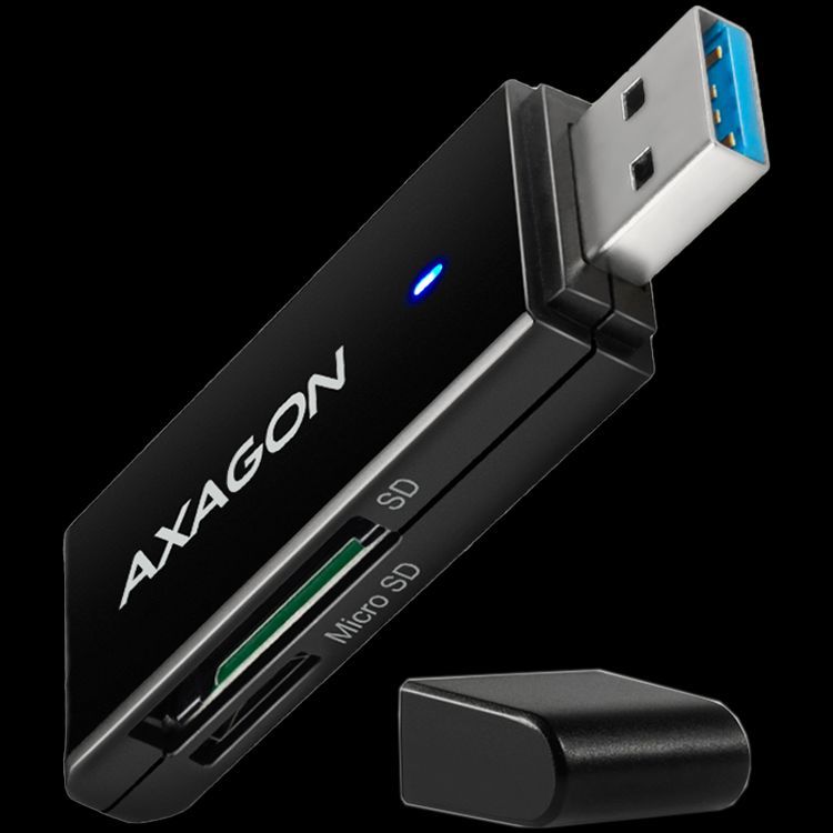 Adaptrid Axagon Axagon Slim super-speed USB 3.2 Gen 1 card reader with a direct USB-A connector.