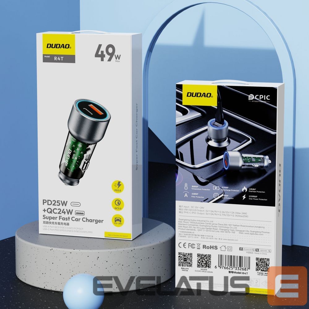 Discover the capabilities of the Dudao R4T 25W car charger, which offers fast charging, support for many popular standards, and versatility thanks to two ports: USB-A and USB-C. No matter what mobile device you have, this charger will ensure you're never without power. With 25W of power, you can charge your device faster than ever before, and the compact, gray design blends seamlessly into any car interior. It's the perfect solution for those who value speed, convenience, and versatility all in one.