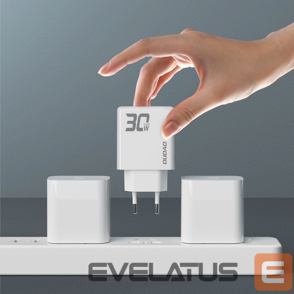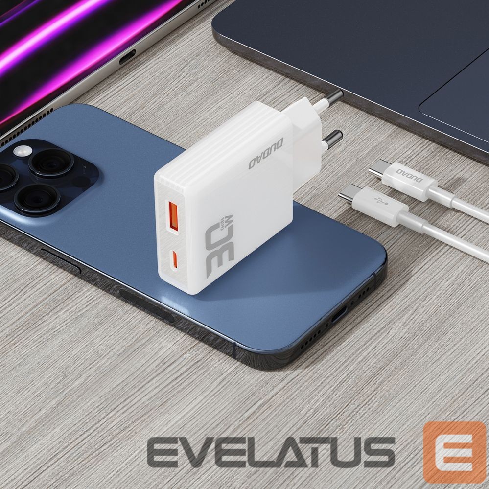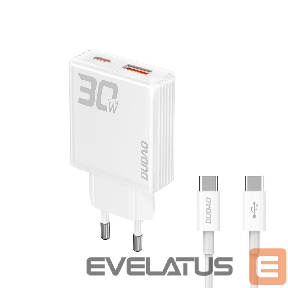GaN Dudao A30EUT 30W USB-A / USB-C Wall Charger – White + USB-C – USB-C Cable