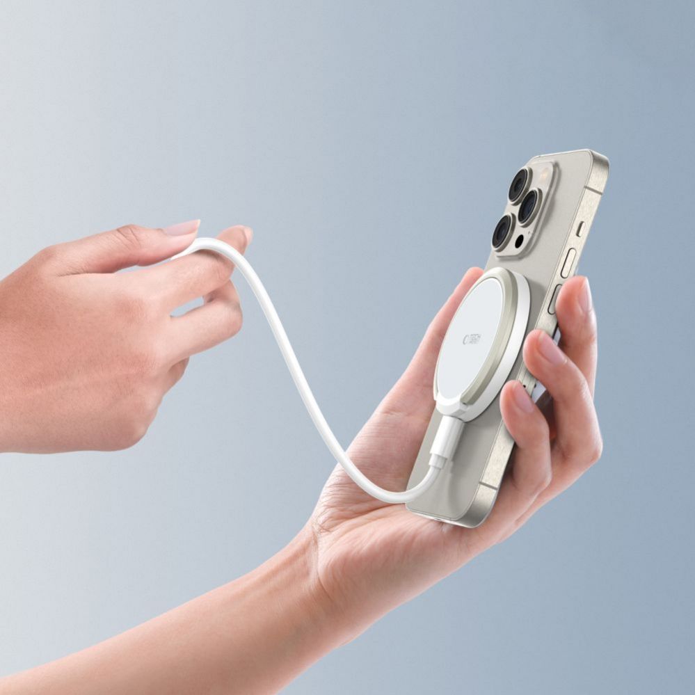 Made of high-quality materials, including ABS and zinc alloy, the QI15W-A33 charger not only ensures reliability but also aesthetic appearance. Additionally, it is equipped with an integrated USB-C charging and data transfer cable, which achieves a transfer speed of 480MB/sec.