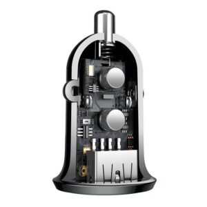 The car charger from Baseus allows you to charge 2 devices at the same time. This allows you and your passenger to charge your phones at the same time. The high amperage current allows for high efficiency and speed of charging. With the charger from Baseus you will charge not only your Android or Apple device, but also GPS navigation, headphones, photo equipment, powerbanks, e-cigarettes and much more.