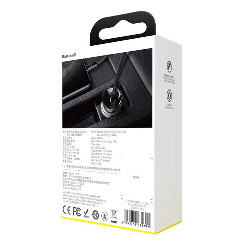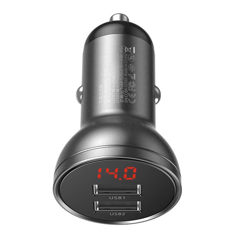 Autolaadijad Baseus Ładowarka samochodowa Baseus z wyświetlaczem, 2x USB, 4,8A, 24W (szara)