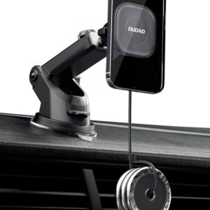 Dudao F6Max is a magnetic car holder equipped with a telescopic arm . Thanks to it, the accessory offers impressive adjustment possibilities , and thus we can perfectly match it to our needs. Made of high quality materials, to be mounted on a flat surface, both the dashboard and the windshield . The holder is equipped with 6 strong magnets and a strong suction cup , which guarantee the stability of the mount and the safety of the phone.