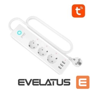 The smart strip protects the devices connected to it from overvoltage. Its one-and-a-half-meter long cable is created from fireproof V0 material and ensures safe use.