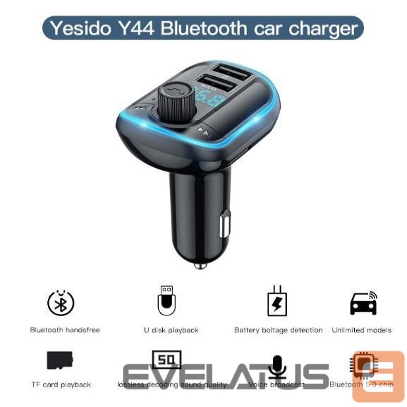 FM modulaator yesido Y44 MP3 Player Bluetooths Cigarette Lighter Auto Charge Universal U Disk 2 Usb Car Charger Black