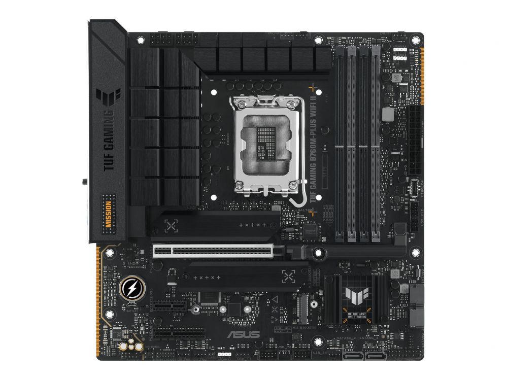 Intel protsessori emaplaat Asus TUF GAMING B760M-PLUS WIFI II | Processor family Intel B760 | Processor socket 1 x LGA1700 Socket | 4 DIMM slots – DDR5, non-ECC, on-die ECC, unbuffered | Supported hard disk drive interfaces SATA-600 (RAID), 3 x M.2 | Number of SATA connectors 4