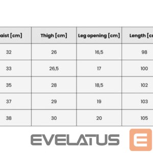 | Size | 1) External length (cm) | 2) Inner length (cm) | 3) Waist circumference (cm) | 4) Thigh circumference (cm) | 5) Calf circumference (cm) |