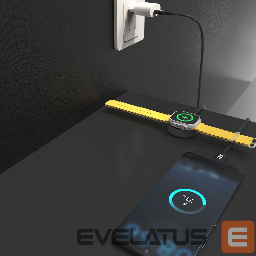 The Dudao A12MaxC charger combines charging for Apple Watch and other USB-C devices. This feature allows you to charge smartphones, tablets, and even laptops using a single device. It's an ideal solution for those seeking simplicity and space savings, eliminating the need to carry multiple cables for different devices.