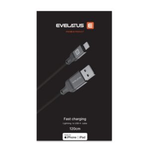 Kaabel Evelatus USB A to Lightning, Cable 1.2M (MFI11CL) Aluminum housing braiding Black