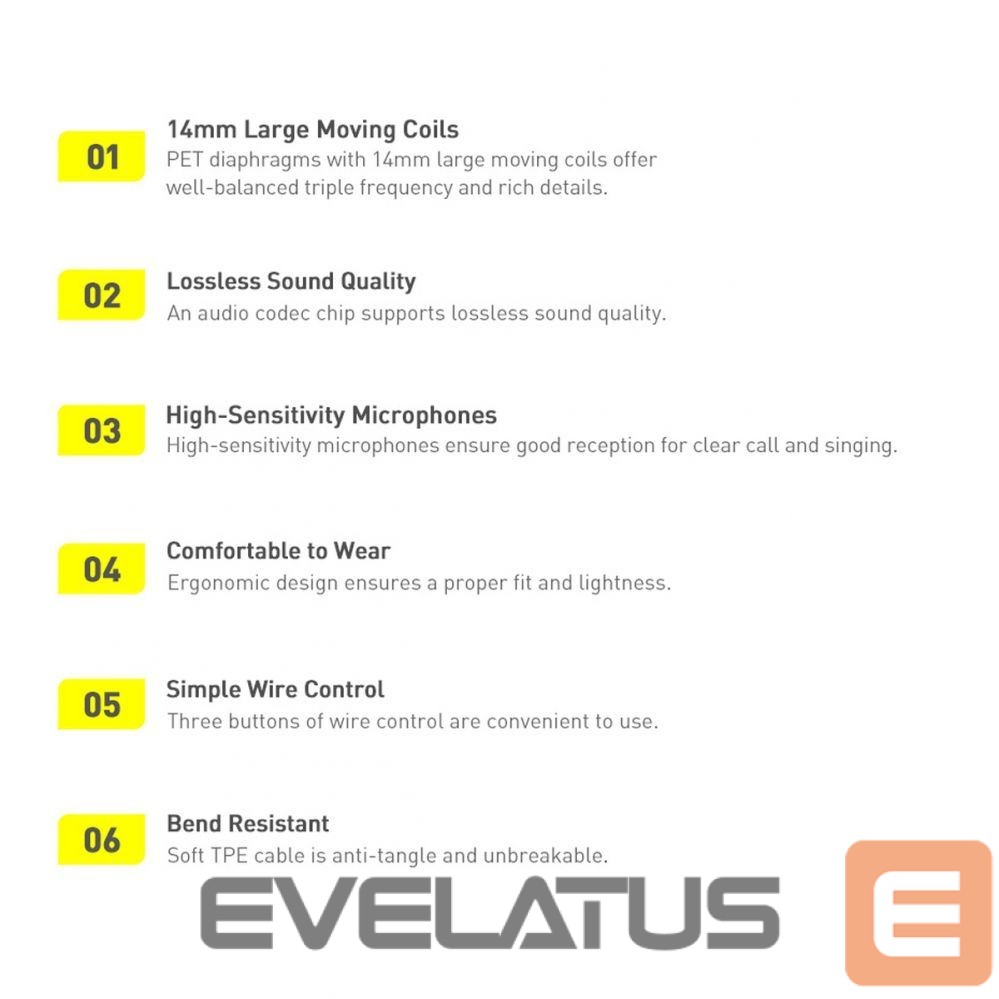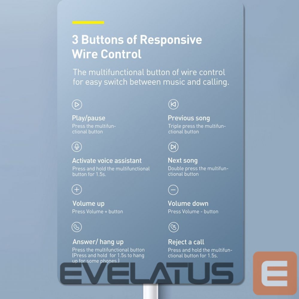 Baseus in-ear headphones are distinguished by a simple, fashionable design and convenient operation. Thanks to the durable, flexible TPE cable, you can use them anywhere, from jogging to relaxing in the comfort of your home. The comfort of listening to music is also ensured by the play / pause functions, or the convenient selection of the next track. You can connect the headphones to any device with a 3.5 mm mini jack port.