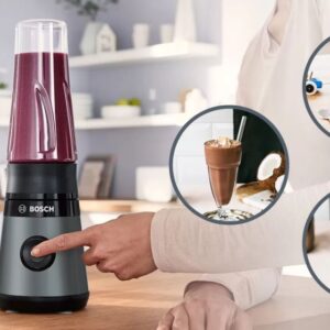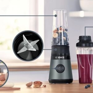 Mikserid ja blenderid Bosch VitaPower ToGo Smoothie Maker MMB2111S Tabletop, 450 W, Jar material Tritan, Jar capacity 0.6 L, Ice crushing, Silver