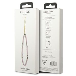 Guess phone charm is a stylish, practical and great addition to your phone case. You can hang it on your wrist to prevent your phone from accidentally falling down. The pendant has a thin but durable cord that you attach to the phone case either in specially prepared eyelets in your case or any cutout, e.g. to the charging or speaker input.