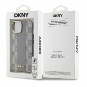 Muu telefoni lisavarustus DKNY DKNY Leather Checkered Mono Pattern MagSafe iPhone 15 Case – Beige