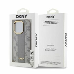 Muu telefoni lisavarustus DKNY DKNY Leather Checkered Mono Pattern MagSafe iPhone 15 Pro Case – Beige