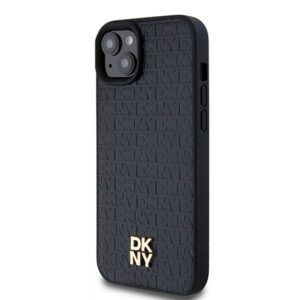 Muu telefoni lisavarustus DKNY DKNY Leather Monogram Pattern Metal Logo MagSafe Case for iPhone 15 Plus / 14 Plus – Black