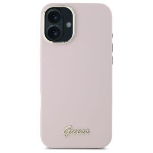 Muu telefoni lisavarustus Guess Guess Silicone Script Metal Logo & Frame iPhone 16 Plus Case – Pink