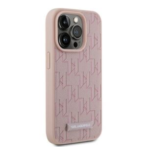 Muu telefoni lisavarustus Karl Lagerfeld Karl Lagerfeld Leather Monogram Metal Logo case for iPhone 15 Pro – pink
