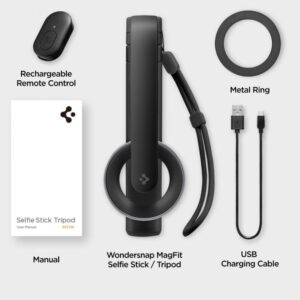 Spigen S571W MagSafe Bluetooth Selfie Stick Tripod is an innovative tool created for photography and filming enthusiasts. Designed specifically to meet the expectations of smartphone users, especially iPhone owners equipped with MagSafe technology. It stands out not only with its unique design, but also with its solid construction.