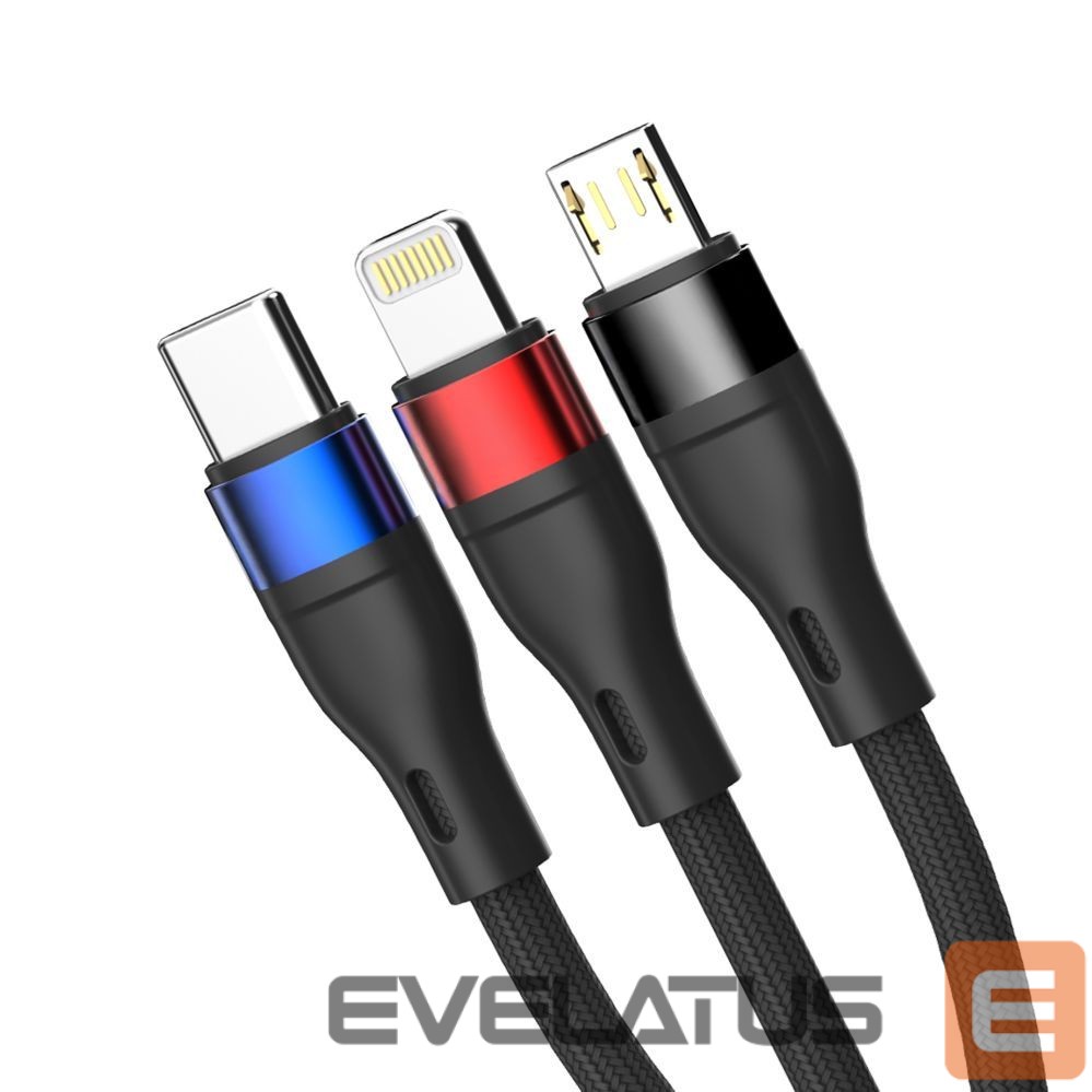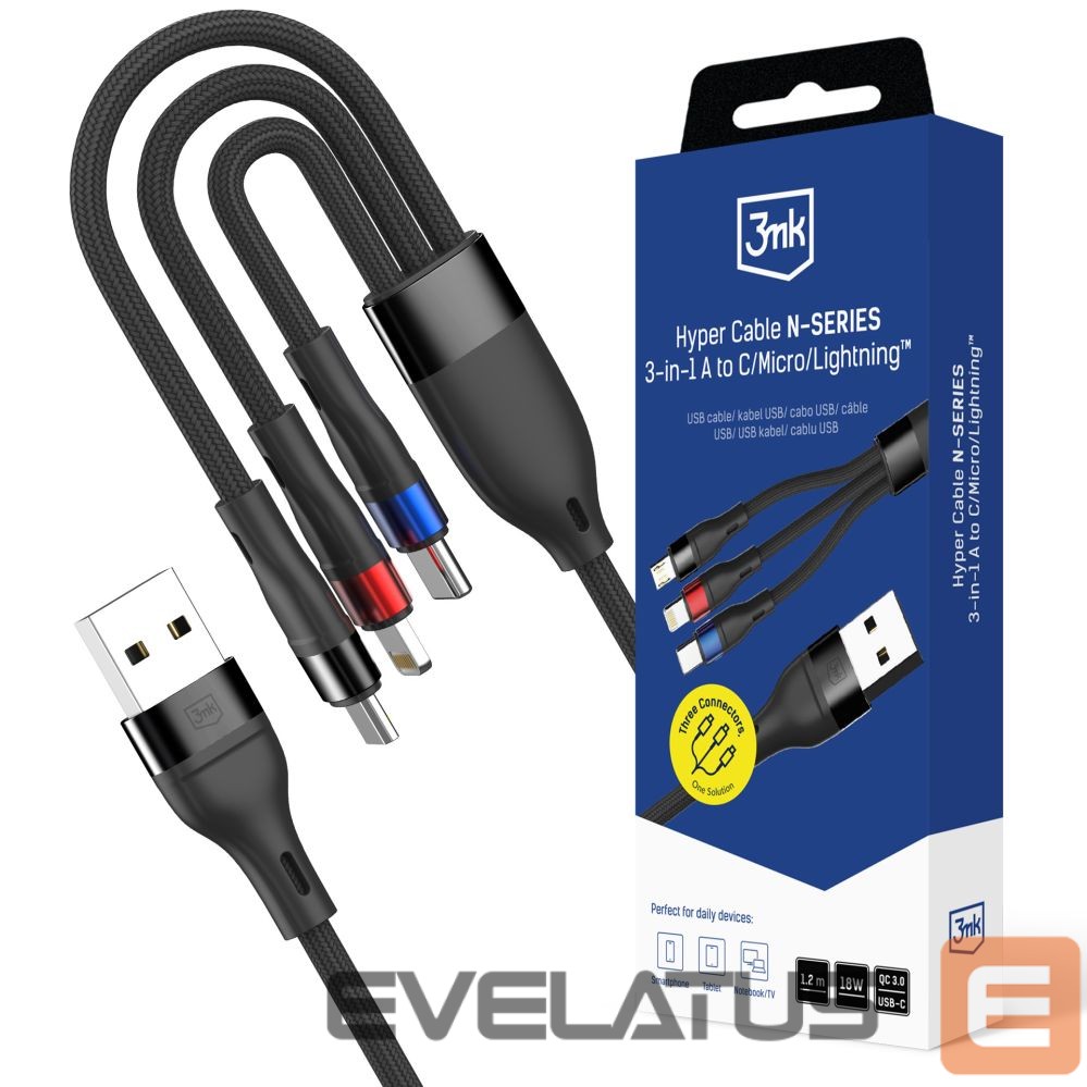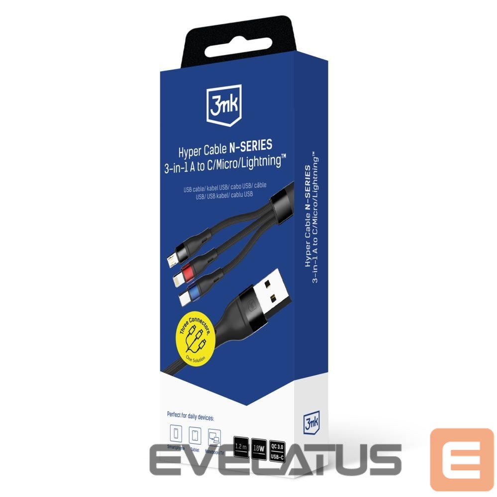 Muud kaubad 3MK 3mk Hyper Cable N-SERIES 3 in 1 USB-A / Lightning / Micro 1.2m 9V/2A 18W – black