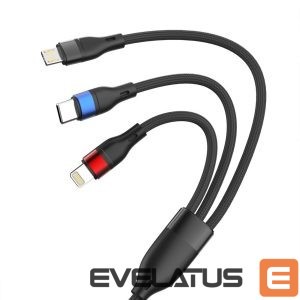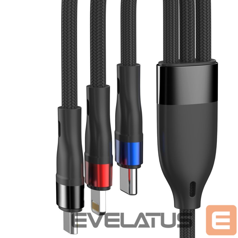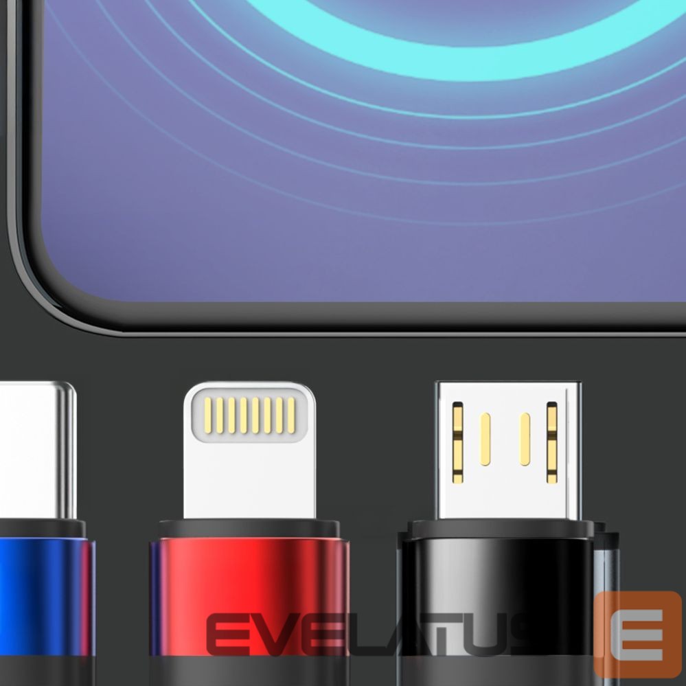 Forget about tangled wires! This single cable with Lightning, USB-C, and Micro USB connectors lets you charge all your devices—smartphones, tablets, power banks, and mobile accessories. A clever tip-switching mechanism makes changing connectors quick and intuitive, while a sturdy mount ensures a secure connection. Quick Charge 3.0 technology delivers precisely adjusted power, ensuring efficient, stable, and safe charging. An intelligent power management system protects batteries from overheating and overcharging, allowing you to use your devices without worrying about their lifespan. The cable is available in an elegant black color that complements any device. Its 1.2m length ensures convenient use at a desk, in the car, or on the go, while also being handy and easy to store.