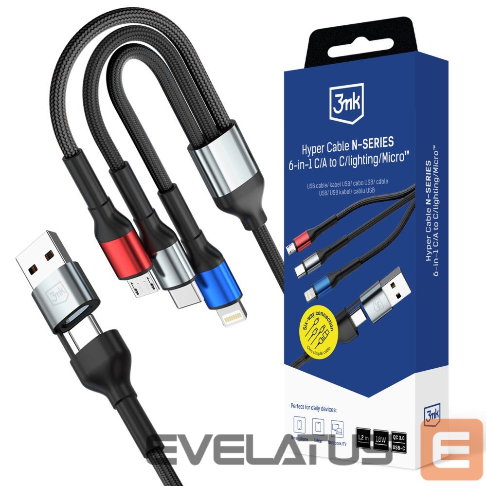 Muud kaubad 3MK 3mk Hyper Cable N-SERIES 6 in 1 USB-C / USB-A to USB-C / Lightning / Micro 1.2m QC 3.0 9V / 2A 18W – black