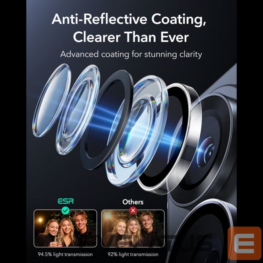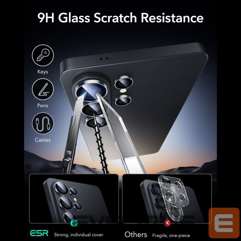 The ESR Armorite Camera Protector is a professional tempered glass cover that provides comprehensive protection for your phone's camera lens. Precisely fitted glass covers the entire surface of the camera module, protecting against scratches, cracks, and other mechanical damage. Military-grade protection guarantees durability and reliability in all conditions.