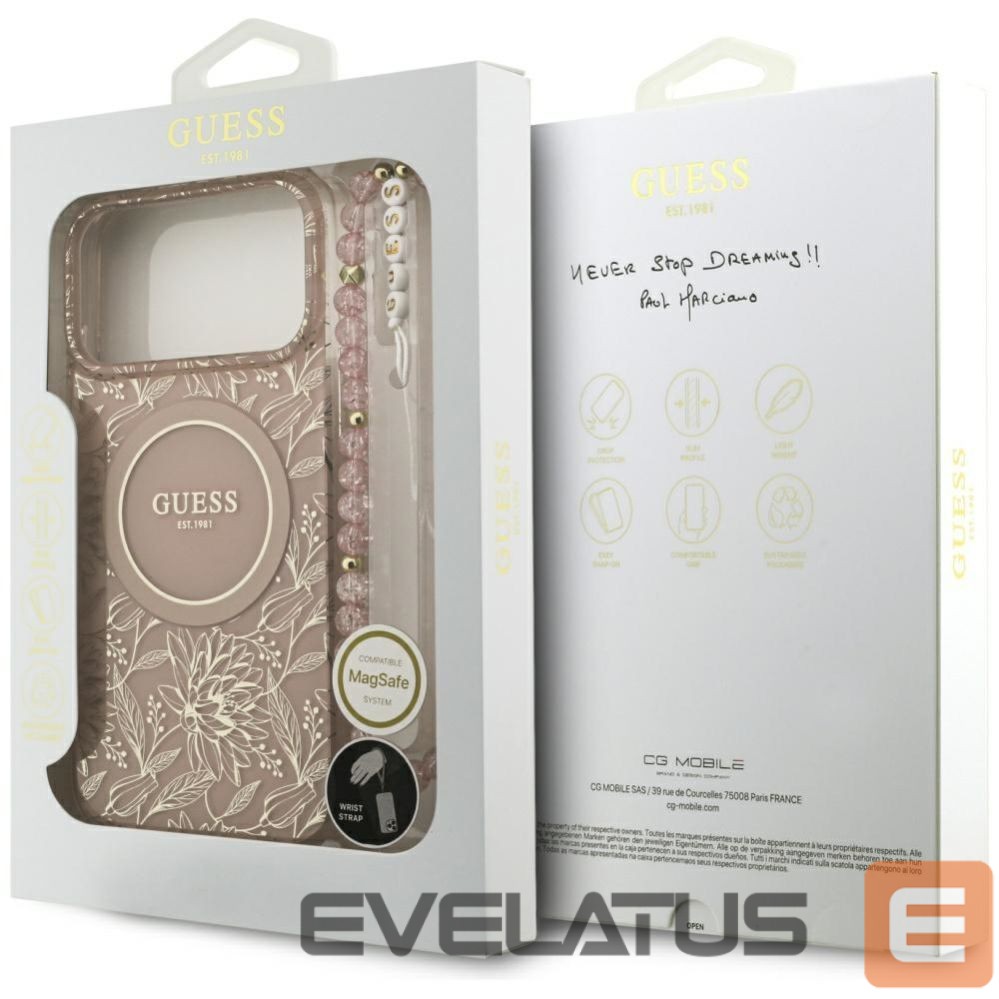 Muud kaubad Guess Guess IML Flowers Electro Pearl Strap MagSafe Case for iPhone 17 Pro Max – Pink