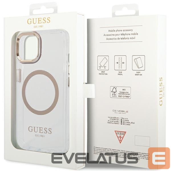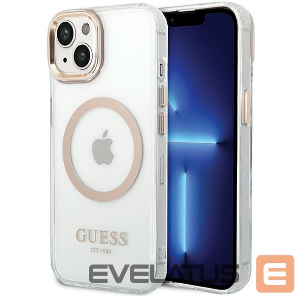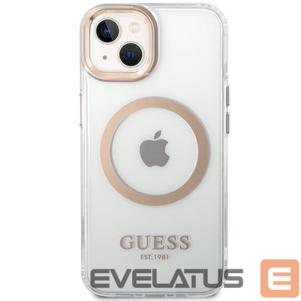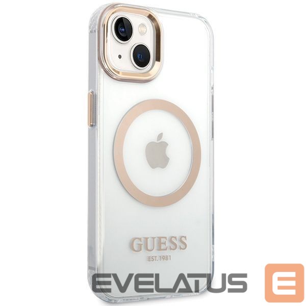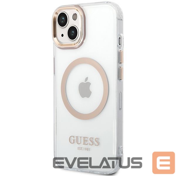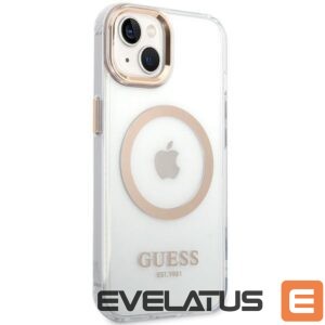 Muud kaubad Guess Guess Metal Outline MagSafe Case for iPhone 15 Plus / 14 Plus – Gold