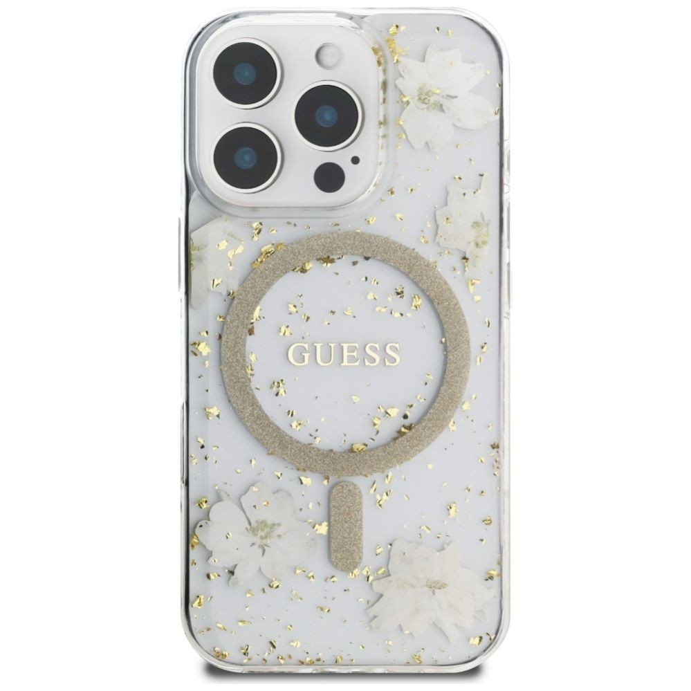 Muud kaubad Guess Guess Resin Flowers Glitter MagSafe iPhone 16 Pro Case – Beige