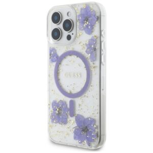 Muud kaubad Guess Guess Resin Flowers MagSafe case for iPhone 16 Pro – purple