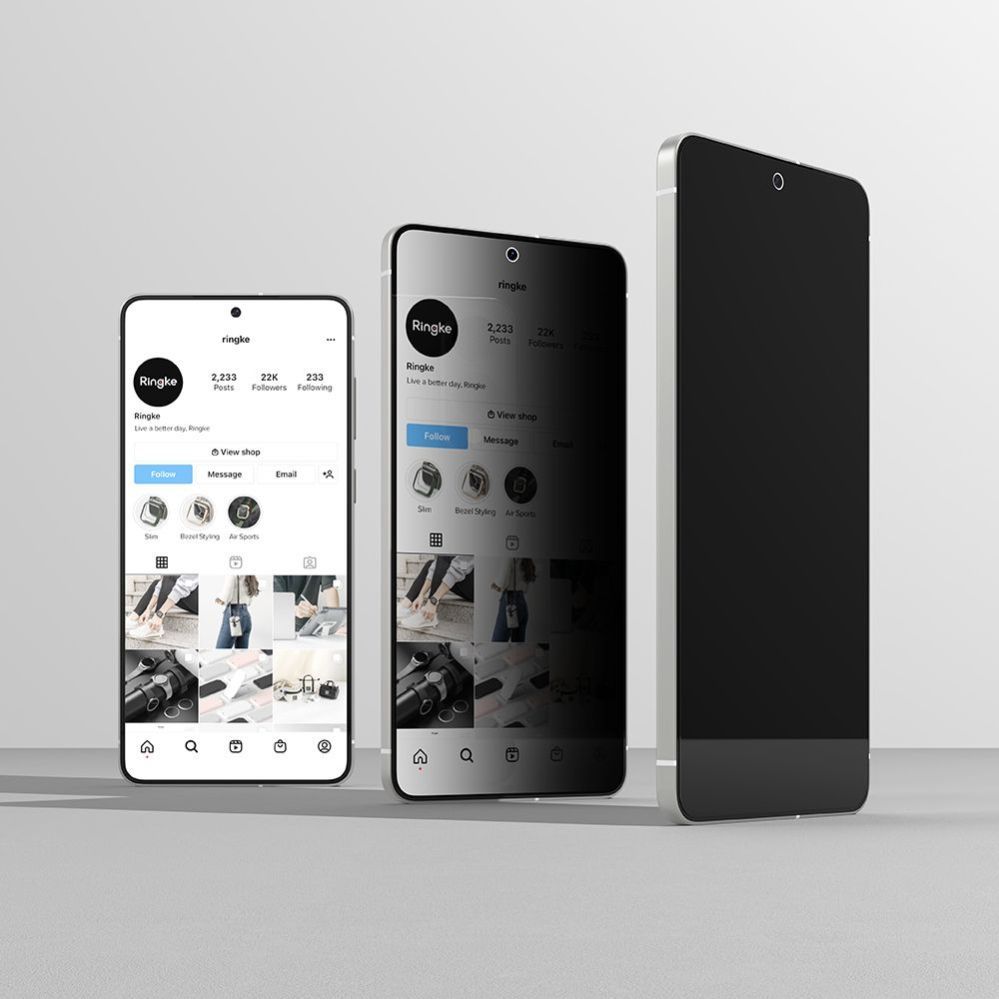 High-quality Ringke Easy Slide tempered glass with a protective filter function is the perfect way to protect your screen from damage and limit its visibility to bystanders. The polarizing filter limits the visibility of the screen at an angle of 28° and completely reduces it at an angle of 40°.
