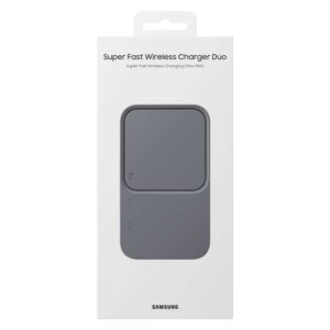 The Samsung Duo EP-P5400TBEGEU inductive charger provides fast 15W charging – your devices will be ready for use in the blink of an eye. Thanks to compatibility with travel adapters and adaptive fast charging, it fits seamlessly with connected devices.