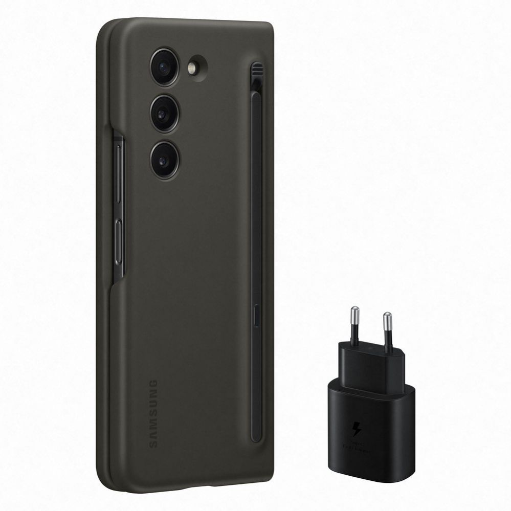 Silicone Case Set for Samsung Galaxy Z Fold 5 Slim Case with Stylus + 25W USB C Wall Charger – Black