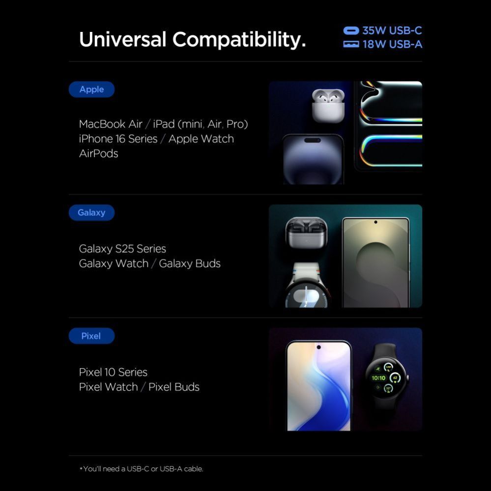 The compact design makes the Spigen EE352EU easy to carry – perfect for home, office, or travel. It's the perfect solution for those who need a fast, smart, and safe power source for their devices without compromising on convenience or performance.