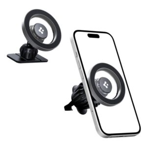 The Spigen MFT13 car mount is a modern and convenient solution for every driver. Compatible with MagSafe technology, it allows for quick and secure device attachment using a strong magnetic connection.