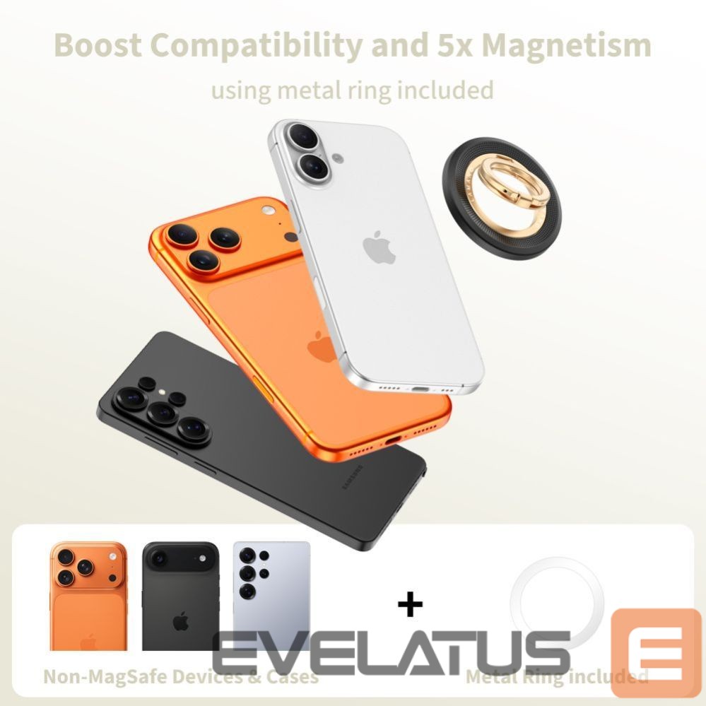 The entire unit is made of durable, pleasant-to-touch materials that ensure comfort and functionality in every situation. The magnetic holder attaches directly to the back of the phone or a MagSafe case, leaving no marks or damage. The compact design doesn't significantly increase the device's size, while maintaining full functionality and aesthetics.