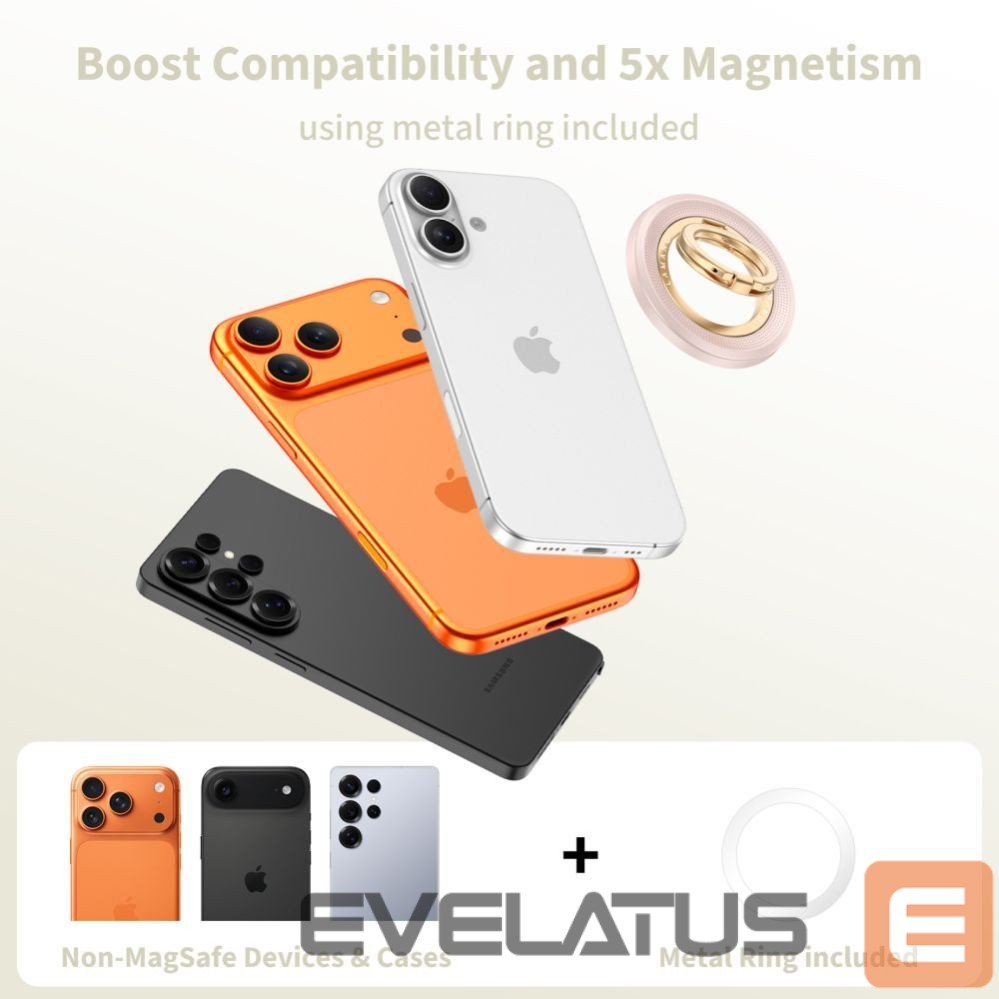 The entire unit is made of durable, pleasant-to-touch materials that ensure comfort and functionality in every situation. The magnetic holder attaches directly to the back of the phone or a MagSafe case, leaving no marks or damage. The compact design doesn't significantly increase the device's size, while maintaining full functionality and aesthetics.