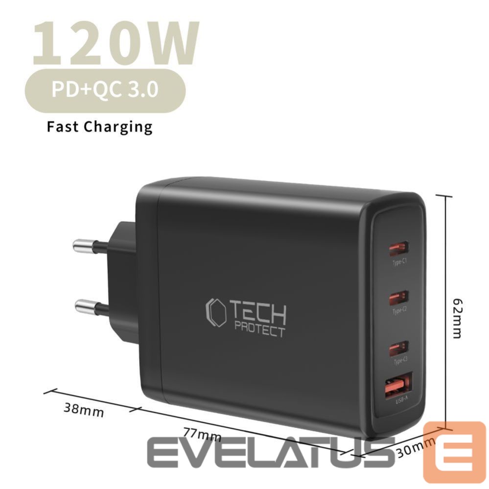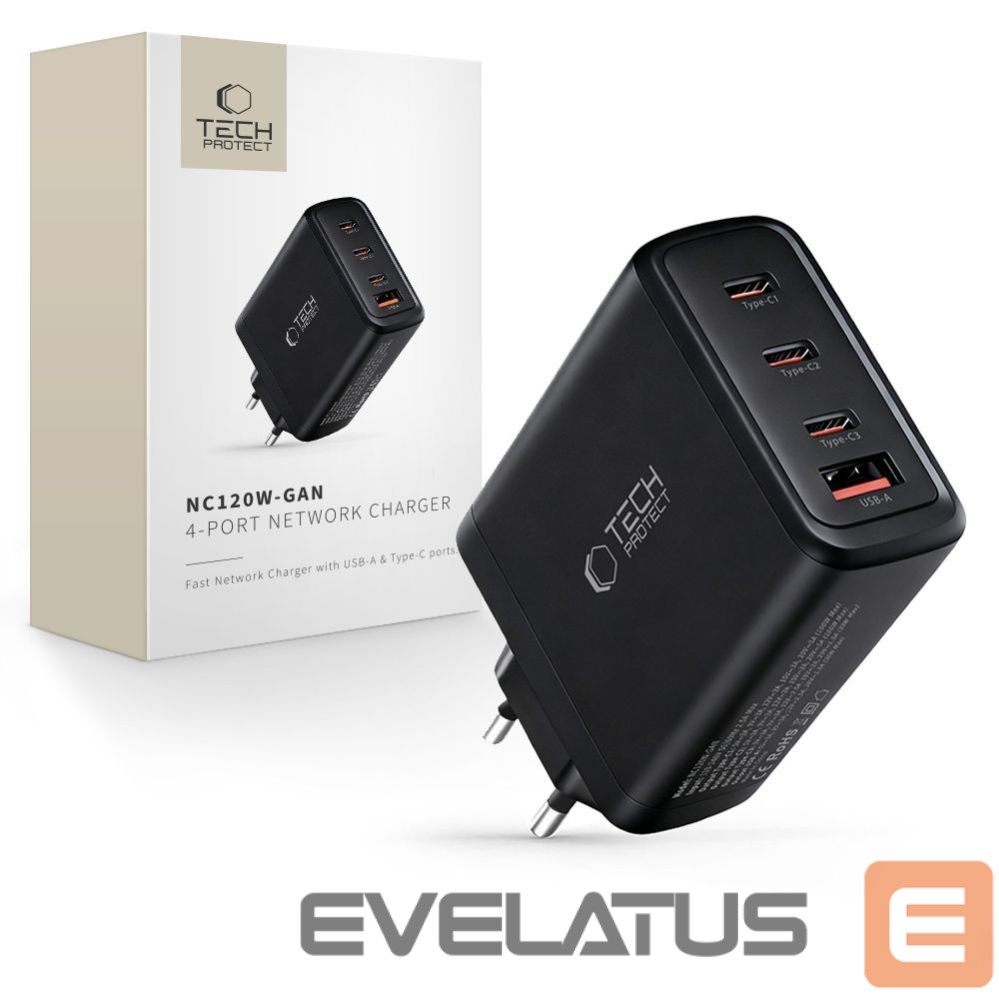 Muud kaubad Tech-Protect Tech-Protect NC120W-GAN 4-Port 120W Wall Charger – Black