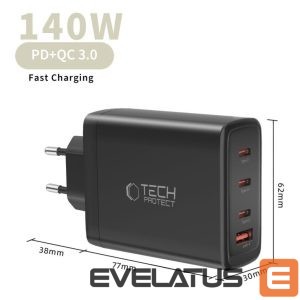 Muud kaubad Tech-Protect Tech-Protect NC140W-GAN 4-Port 140W Wall Charger – Black
