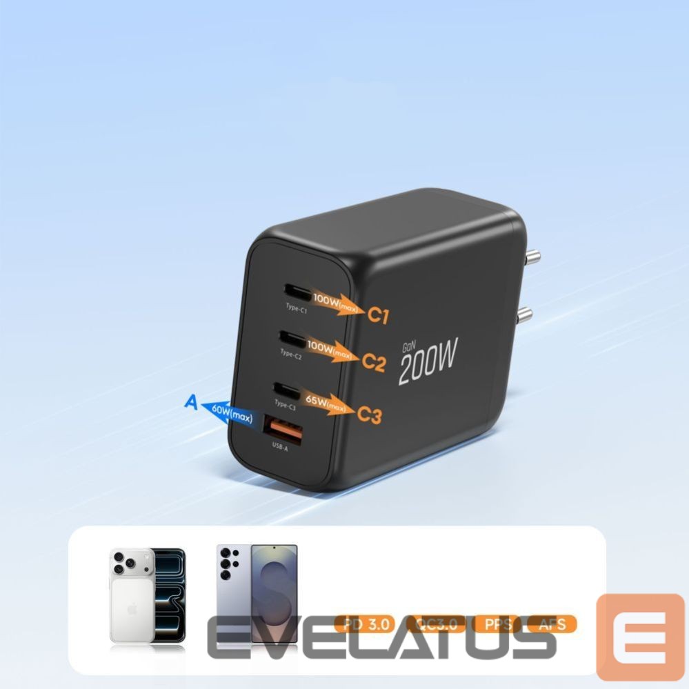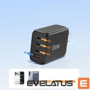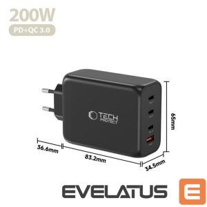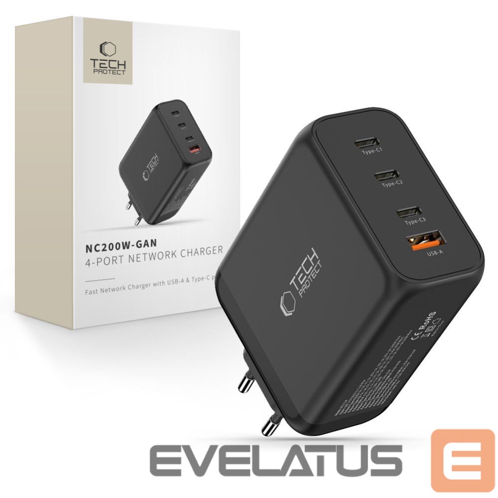 Muud kaubad Tech-Protect Tech-Protect NC200W-GaN 4-Port 200W Wall Charger – Black