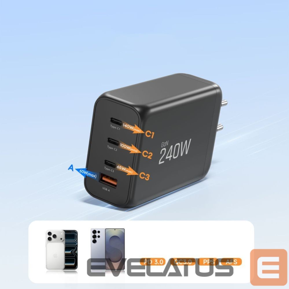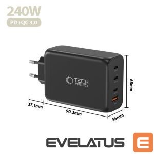 Muud kaubad Tech-Protect Tech-Protect NC240W-GaN 4-Port 240W Wall Charger – Black