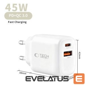 Muud kaubad Tech-Protect Tech-Protect NCA45W-GAN 2-Port 45W Wall Charger with USB-C Cable – White