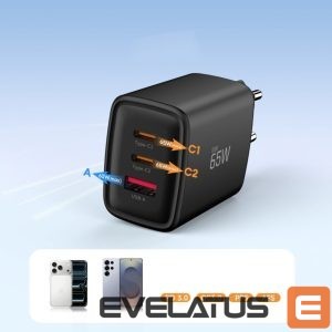 The Tech-Protect NCA65W-GAN wall charger is a compact device utilizing modern GaN (gallium nitride) technology, offering 65W of power in a sleek design. With three charging ports, you can simultaneously power your laptop, smartphone, and tablet at full capacity.