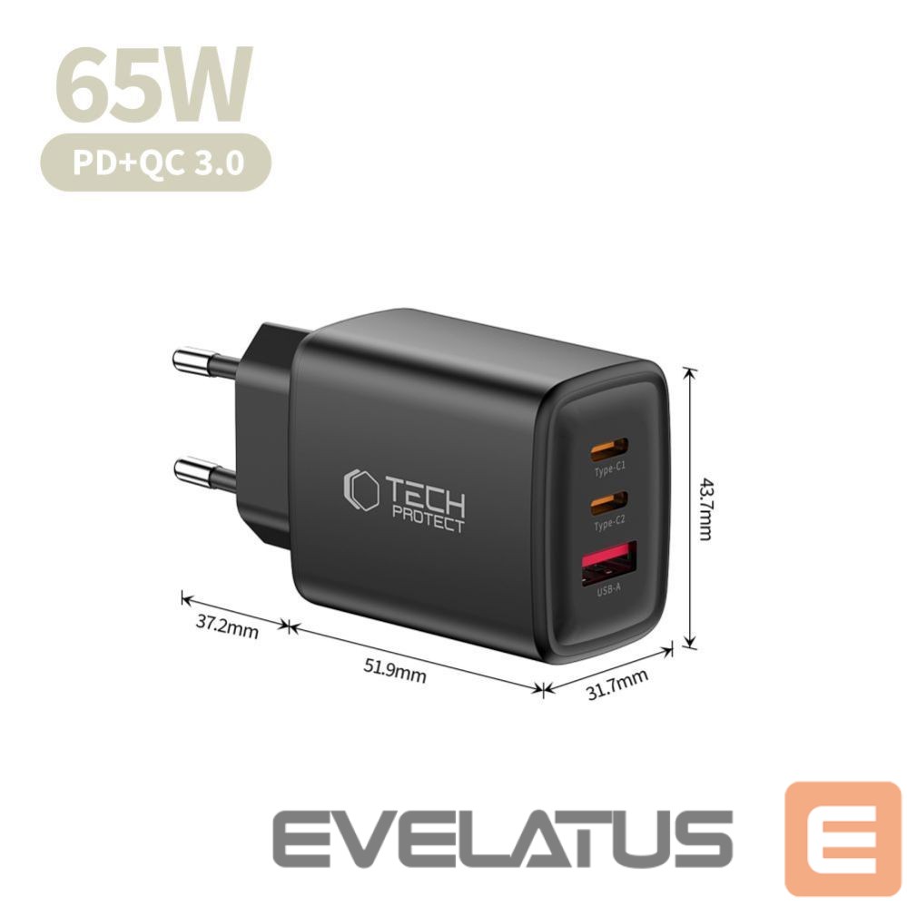 Muud kaubad Tech-Protect Tech-Protect NCA65W-GAN 3-Port 65W Wall Charger – Black