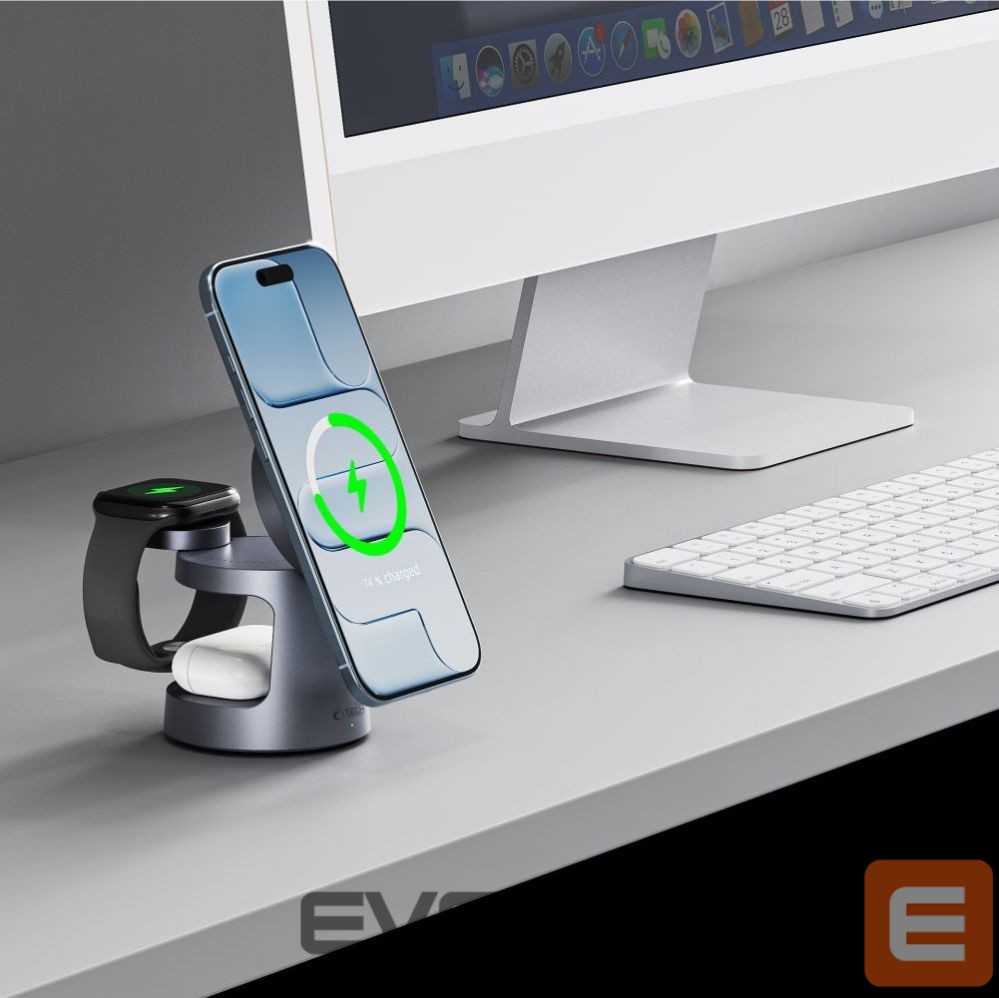 Tech-Protect QI2.2-25W-A48 3in1 This magnetic charging station allows you to simultaneously power your smartphone, smartwatch, and wireless headphones. Thanks to MagSafe technology and Qi/Qi2 standards, the charger provides fast and convenient charging without the need to connect cables to each device separately. Everything you need is in one place – on your desk, by your bed, or at work.