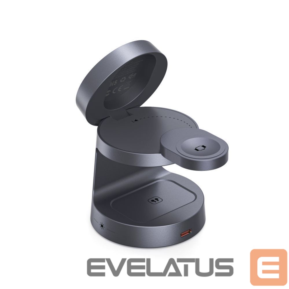 A dedicated smartwatch charging platform supports all generations of Apple Watch , delivering 2.5W of power. A flat, 5W induction mat is designed for Apple AirPods and Galaxy Buds wireless headphones. You can charge all your devices simultaneously, saving time and eliminating cable clutter.